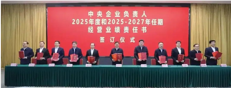 日前,国务院国资委召开视频会议,深入贯彻中央经济工作会议精神,部署下一阶段重点工作。国资委党委书记、主任张玉卓代表国资委与中央企业负责人签订2025年度及2025-2027年任期经营业绩责任书,中国移动、中国电信、中国联通三大运营商董事长悉数出席并签署责任书。
